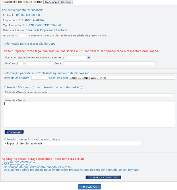 Após preencher essa tela clique no botão GERAR DOCUMENTOS.