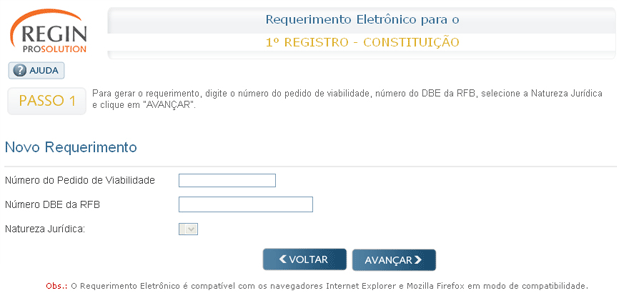 Para gerar um novo requerimento eletrônico o solicitante deve preencher os seguintes campos: