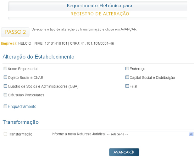 Ou selecione a transformação e informe a nova Natureza Jurídica.